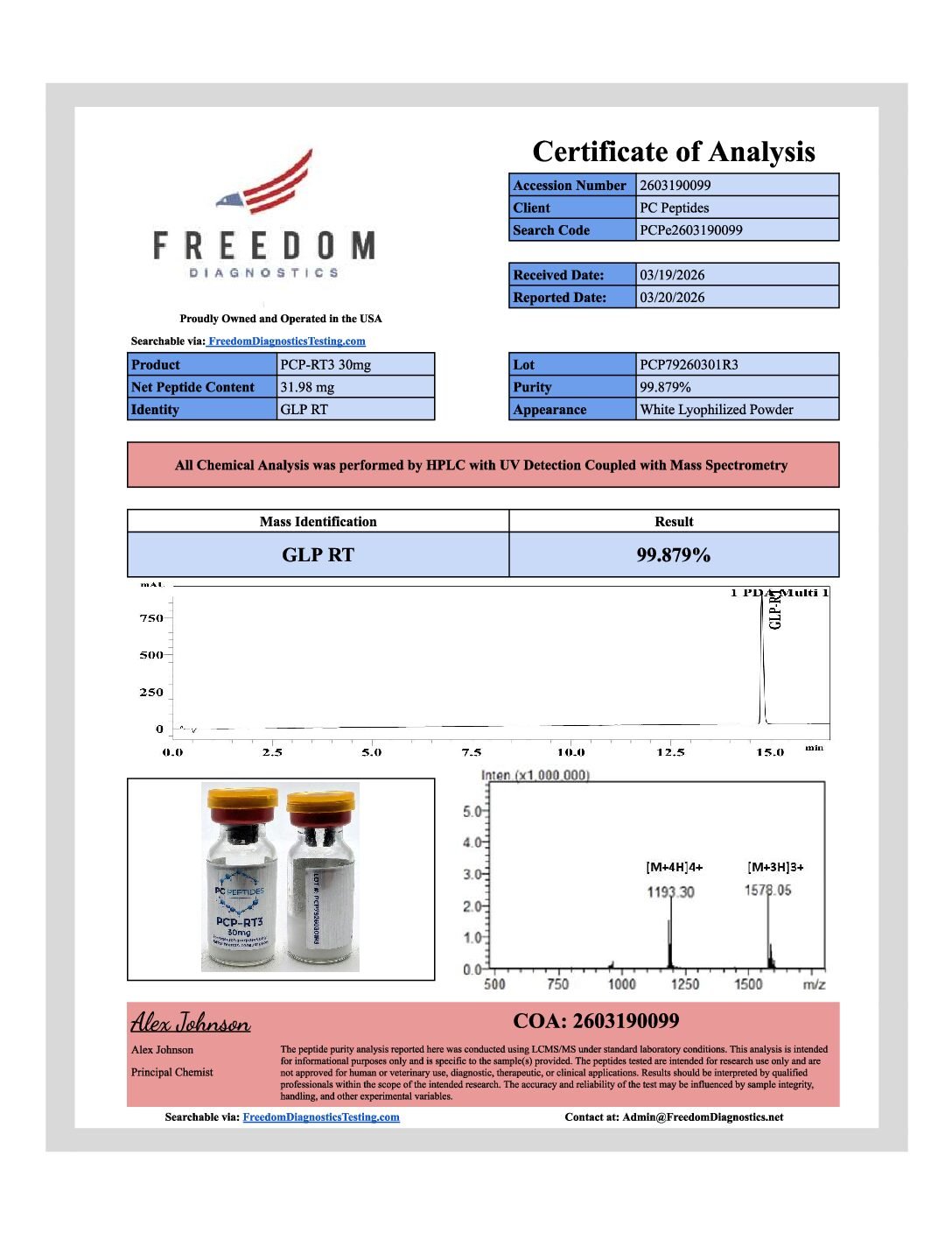 PCP-RT3 supplied strictly for research and development purposes only. Not for human or veterinary consumption.
